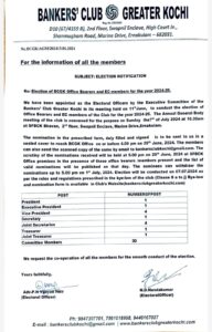 BCGK Annual General Body Meeting and Election of new team for the period 2024-25. Meeting will be held at SFBCK Bhavan, Marine Drive Ernakulam on 7th July 2024 time 10.30am onwards
